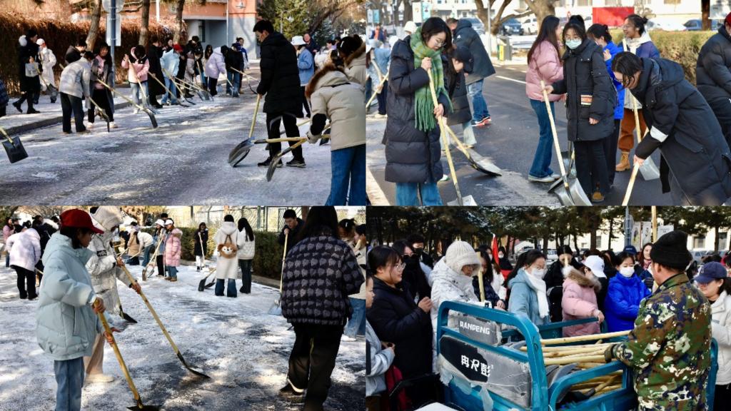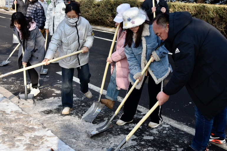 为深入推进党的二十大相关的学习教育,扎实开展“我为青年办实事”主题实践活动,积极发挥团属职能,发挥党员先锋模范作用,强化党员服务意识,提升志愿服务质效,12月12日,澳门电子pg游戏官网党组织广泛动员党员干部开展校园扫雪铲冰工作,清除积雪、扫出道路,为校园师生确保道路安全畅通。