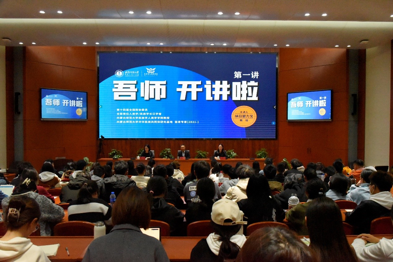 11月3日上午8:30,澳门电子pg游戏官网学风建设系列讲座"吾师·开讲啦"在信息楼报告厅隆重开坛,并邀请我校资深教授纳日碧力戈进行首场讲座,澳门电子pg游戏官网党委书记包凤兰出席并致辞,本科生、研究生和部分教师参加。讲座由学院党委副书记副院长陆一琼主持。