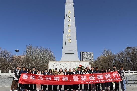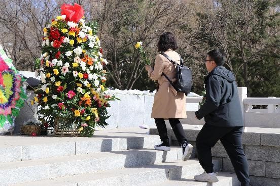 习近平总书记指出:“我们要在全社会树立崇尚英雄、缅怀先烈的良好风尚。对为国牺牲、为民牺牲的英雄烈士,我们要永远怀念他们,给予他们极大的荣誉和敬仰,不然谁愿意为国家和人民牺牲呢?”为深入贯彻落实习近平总书记重要指示精神,4月2日上午,在党委副书记副院长陆一琼的带领下,澳门电子pg游戏官网师生党员代表赴呼和浩特市青城公园英雄纪念碑开展“清明”祭扫活动,缅怀先烈,寄托哀思。