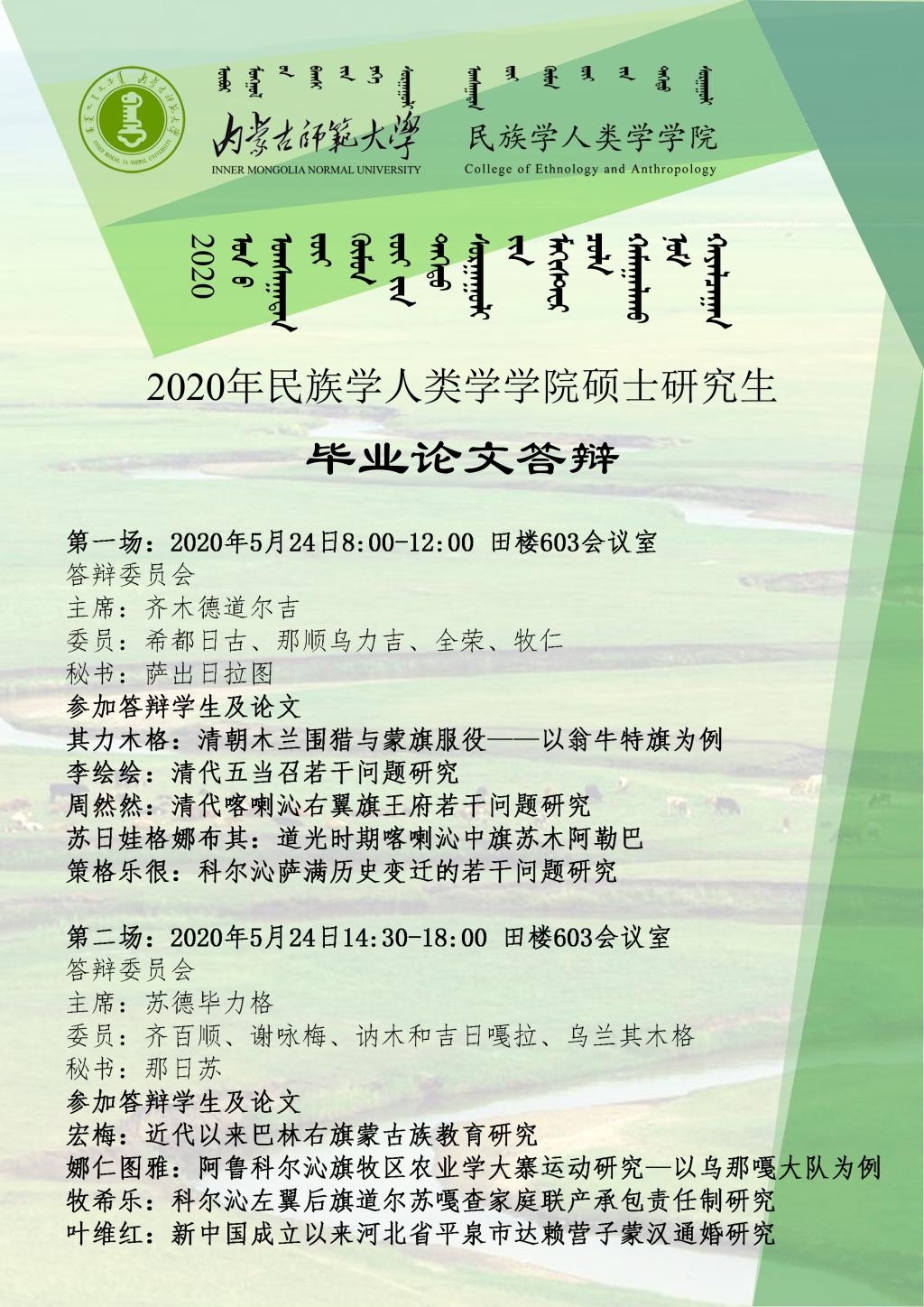 关于2020届人类学专业硕士研究生毕业论文答辩的通知