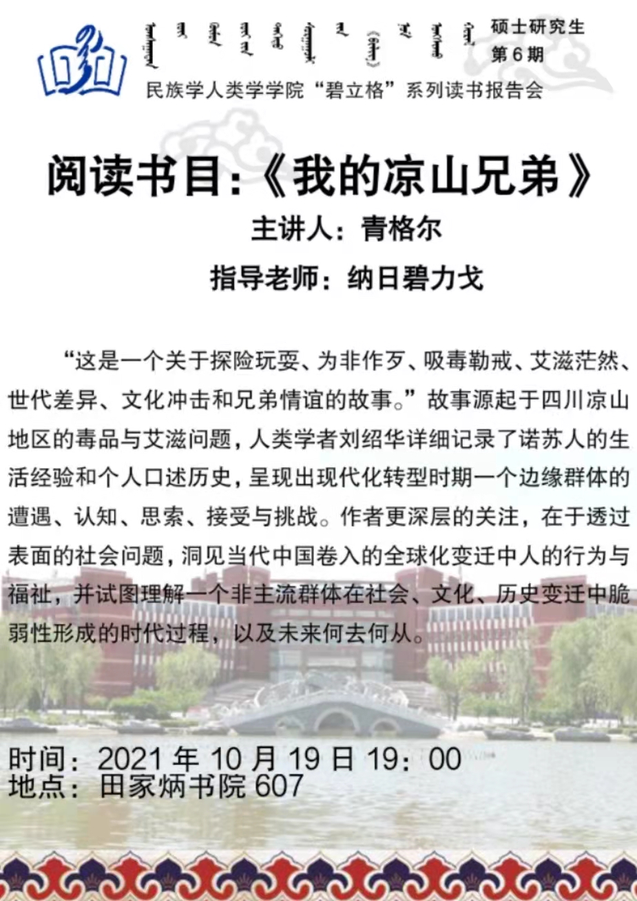“碧立格”系列读书会民族学专业本科生第1期预告