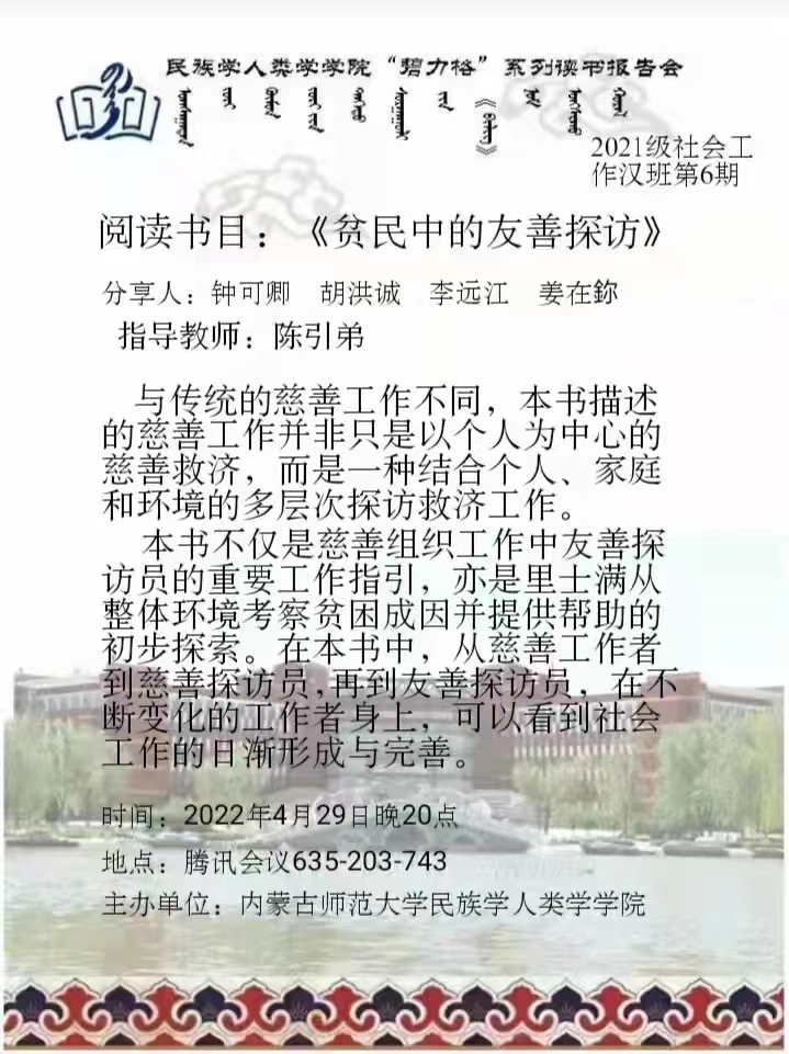 组长:钟可卿 胡洪诚 李远江 姜在鉨 2021级社会工作汉班本科生