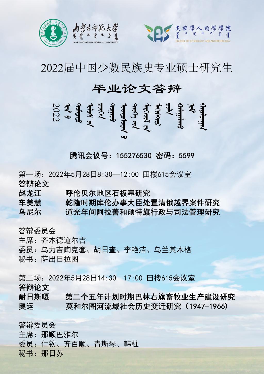 澳门电子pg游戏官网 中国少数民族史专业2022届硕士研究生学位论文答辩会