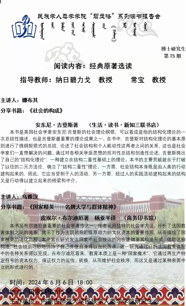 澳门电子pg游戏官网“碧立格”系列读书报告会预告博士研究生第75期