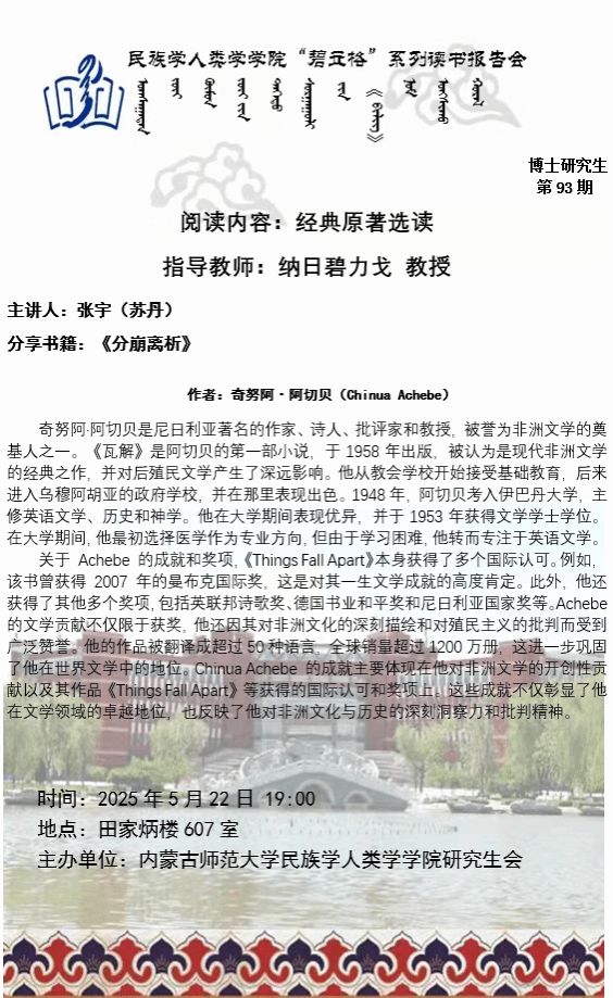 澳门电子pg游戏官网“碧立格”系列读书报告会预告博士研究生第93期