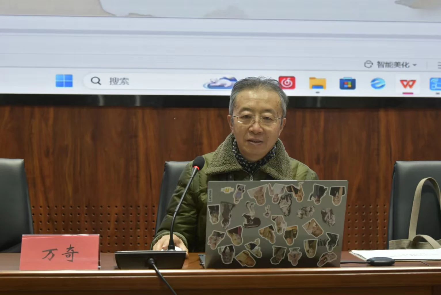 讲座伊始,由包双成老师对万奇教授进行介绍,点明本次讲座的主题。讲座中,万奇教授聚焦何谓文化、中华文化传承、中华文化传播、中华文化创新四个方面,以幽默风趣的语言,深入浅出,引经据典,结合实例,阐述了现今的文化背景、中华文化的意义与内涵、发展与传播、传承与创新,引导在场学生积极互动,加深了学生们对中华文化内涵的理解,丰富了学生们对中华文化传承发展的认知。随后,万奇教授举例现今中华文化的创新方式与成果,对本次讲座进行收尾,同时对临近期末的同学们表达了诚挚的祝福。