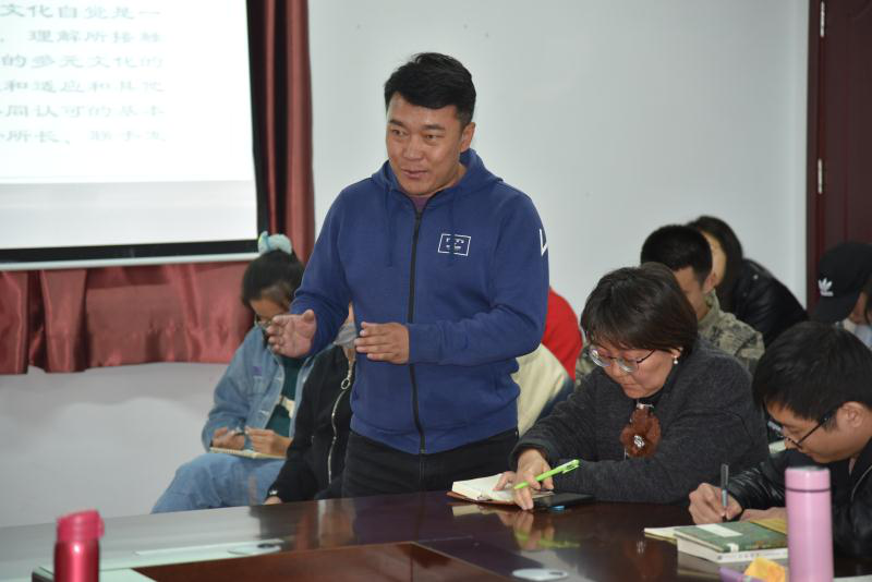 为了激发广大师生读书热情及科学研究的积极性,澳门电子pg游戏官网于2020年10月4日下午在科研楼301会议室启动了“碧立格”读书系列活动。本次活动由澳门电子党总支副书记阿荣老师主持,党总支书记包凤兰老师、院长乌日陶克套胡老师、塔娜老师、萨初日拉图老师、包美丽老师、旅游学院阿荣娜老师、马克思主义学院白晓梅老师以及澳门电子pg游戏官网的博士研究生、硕士研究生,本科生共50余人参加了本次读书会。