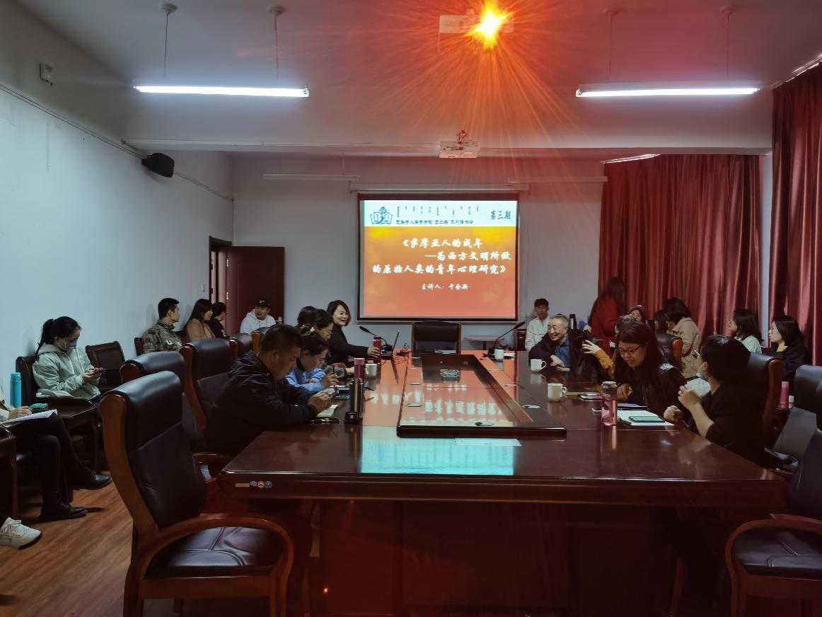 以书会友,同沐书香。澳门电子pg游戏官网于2020年10月18日下午三点在科研楼301举办了第三期“碧立格”系列读书会,于会新博士为大家深入解读了玛格丽特•米德的重要著作《萨摩亚人的成年》。本次读书会由澳门电子pg游戏官网院长乌日陶克套胡老师主持,参会人员有赵树冈教授、澳门电子党总支副书记阿荣老师以及博士、硕士及本科生共45人。