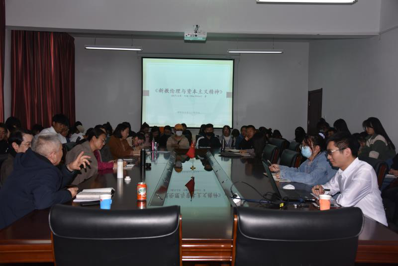 由澳门电子pg游戏官网主办的“碧立格”系列读书会第五期于2020年11月1日下午15:00在科研楼201准时进行。本次读书会由民人院博士生付为政主讲,由乌日陶克套胡院长主持。汇报书目是《新教伦理与资本主义精神》。参与本场读书会的成员还包括澳门电子党总支副书记阿荣老师,赵树冈教授,以及博士生硕士生本科生50余人。