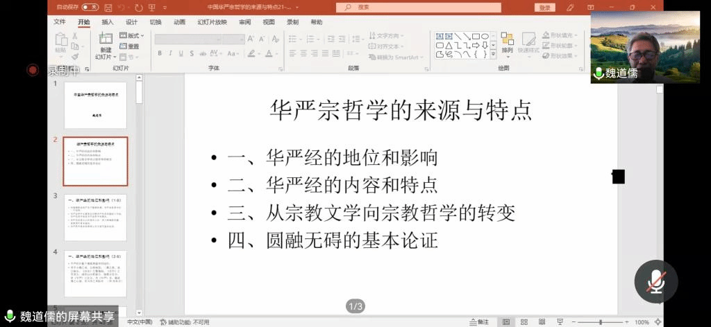 10月26日下午的“佛学文化研究院‘智慧甘露’系列讲座”由满达副院长主持,主讲人魏道儒先生做了题为“佛教与中国传统文化”的精彩讲座。在线参加此次学术活动的包括澳门电子20级民族学本科生和宗教学研究生,此外还有澳门电子与音乐学院、学报编辑部的10余位老师。