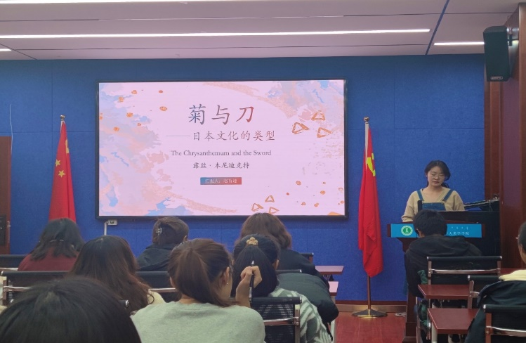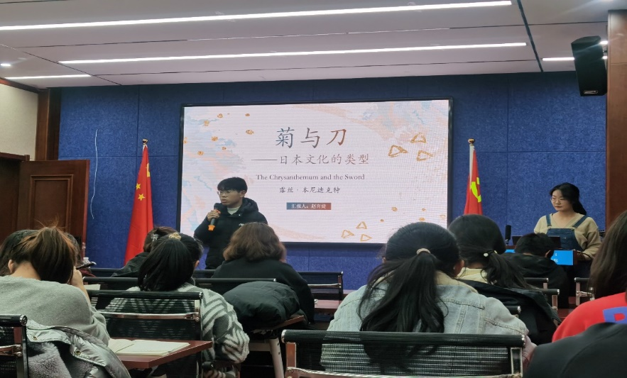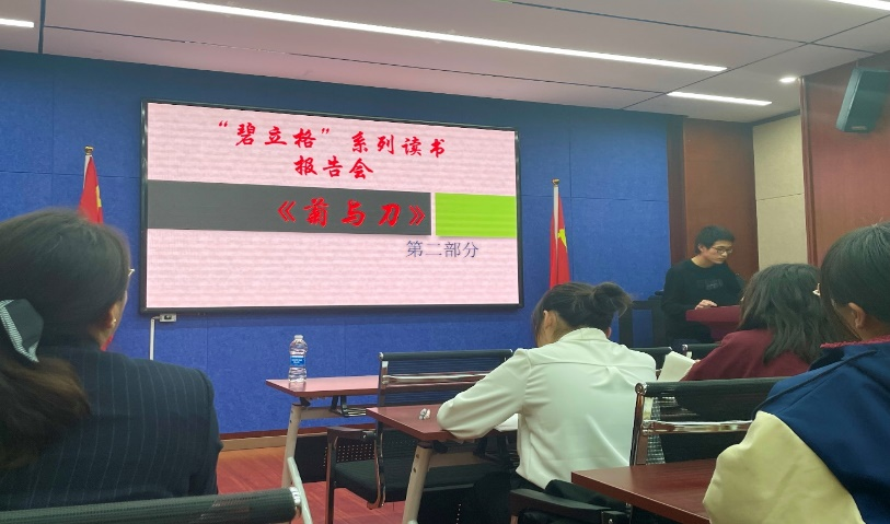 11月19日傍晚19:00,澳门电子pg游戏官网2021级本科班在田楼615会议室开展了第三期“碧立格”读书报告会,指导老师包美丽、班主任云中老师莅临现场,梁东新同学主持活动,由赵育婕同学和张学毅同学主讲本尼迪克特的著作《菊与刀》。