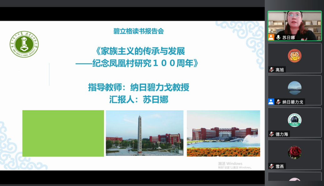 2022年4月24日下午3:00,澳门电子pg游戏官网2021级、2020级博士研究生通过“腾讯会议”举行了第35期读书报告会。本次读书报告会的汇报者是来自2021级民族学专业的苏日娜和高旭两位博士生。澳门电子pg游戏官网首席专家、博士生导师纳日碧力戈教授出席了本次读书报告会并进行指导,2021级博士生高旭主持报告会。